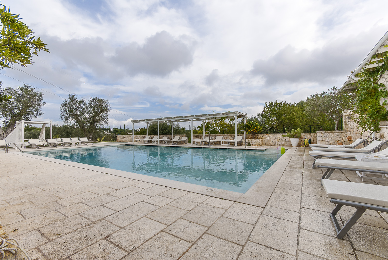 Masseria Salinola is a XVIII century masseria located in the countryside of Ostuni, Puglia, today transformed in a country house. Within the restoration project, Cream has been used for the stone floor covering of the patio, contributing to its sophisticated end elegant essence, whereas Perla Antique is the limestone used for the surfaces of the swimming pool area.